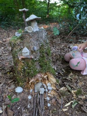 Der Wald bietet eine Fülle von Anregung aber kein vorgefertigtes Spielmaterial. Die Naturmaterialien bekommen ihren Spielwert durch die Bedeutung, die Kinder ihnen geben. Die Fähigkeit aus allem etwas zu machen, stärkt die ursprüngliche Kreativität und hilft den inneren Reichtum zu entfalten. Dem verbreiteten Überfluss an allen möglichen Dingen wirkt die Natur entgegen, in dem nur das zum Spielzeug wird was die Kinder brauchen. Sie erleben, wie wenig sie brauchen, um in ein interessantes Spiel zu kommen und tragen das als sicheren Schatz für ihr Leben bei sich.